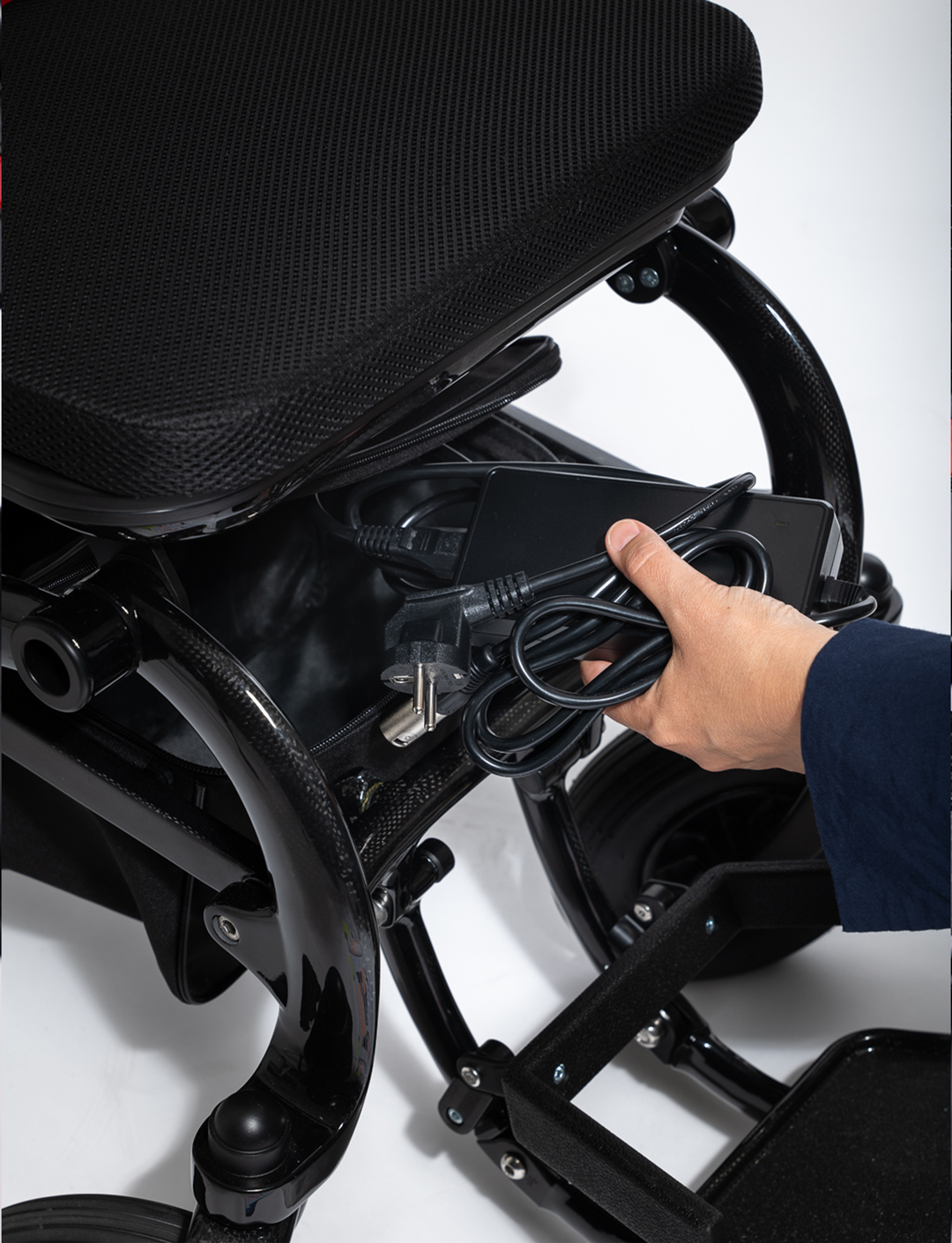 Renumită pentru raportul incredibil dintre rezistență și greutate, fibra de carbon este un material des utilizat în aplicații precum bicicletele, mașinile, bărcile, avioanele și ingineria structurală. De ce să nu ne folosim de aceste beneficii și pentru scaunele rulante electrice? Cadrul nostru din fibră de carbon nu este doar remarcabil de ușor, ci și extrem de rezistent, asigurând o experiență de condus mai ușoară și mai plăcută.