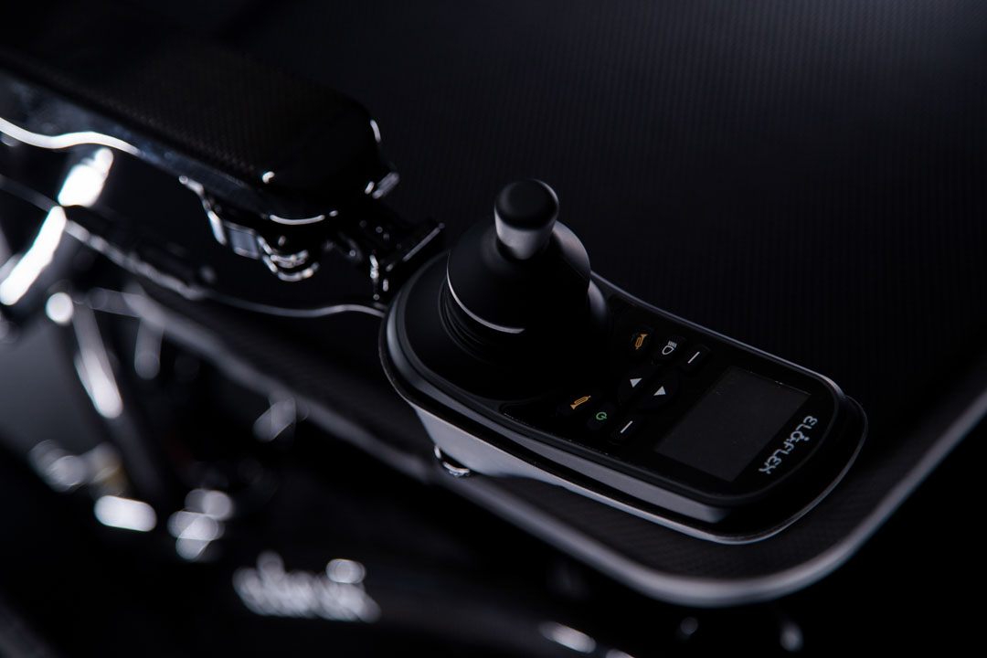 Suportul nostru inteligent pentru joystick vă aduce mai aproape de marginea meselor, îmbunătățind accesibilitatea. Suportul pentru picioare se pliază în mod convenabil sub scaun, iar roțile mari din spate, umflate cu aer, asigură o călătorie confortabilă chiar și pe teren accidentat. Cu două baterii standard și spațiu pentru o a treia baterie, autonomia se extinde până la 45 km, cu 7,5 ore de utilizare după o singură încărcare.