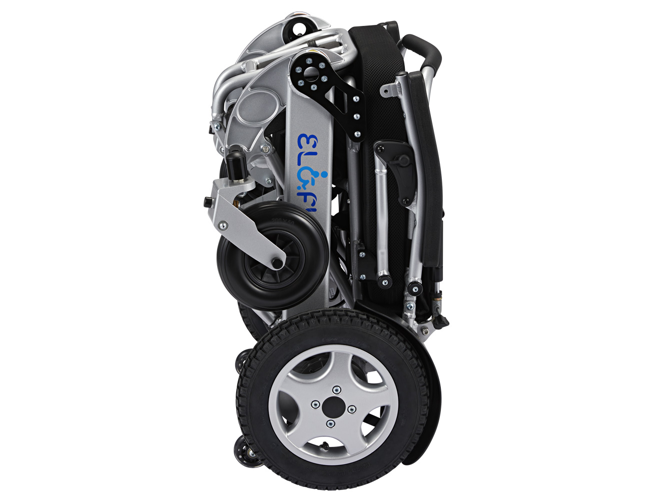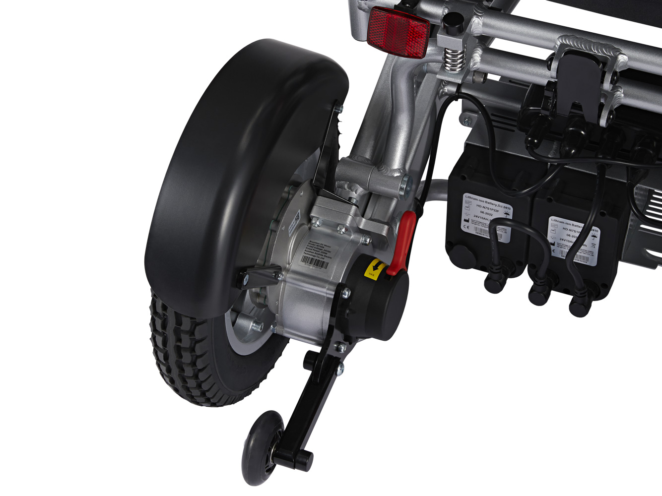 Acest model este dotat cu roți cu furci pentru absorbția șocurilor, care asigură o experiență de condus mai lină și mai confortabilă. Împreună cu anvelopele de spate umplute cu aer, acest scaun oferă confort și amortizare superioare.