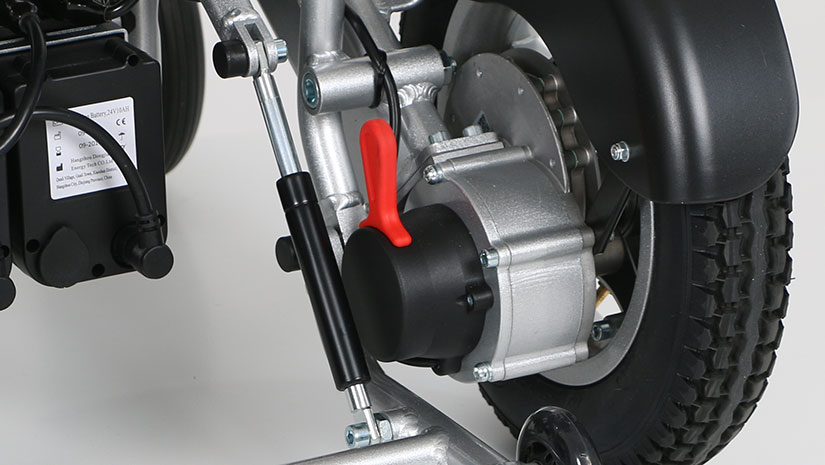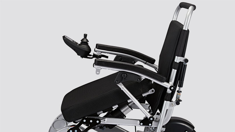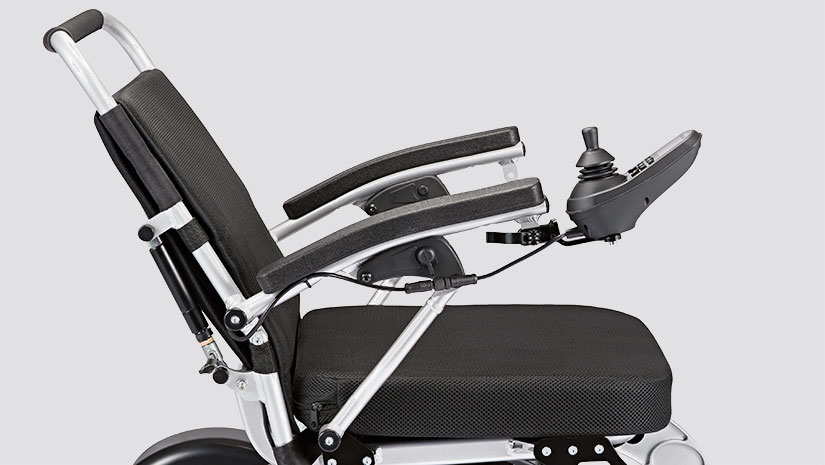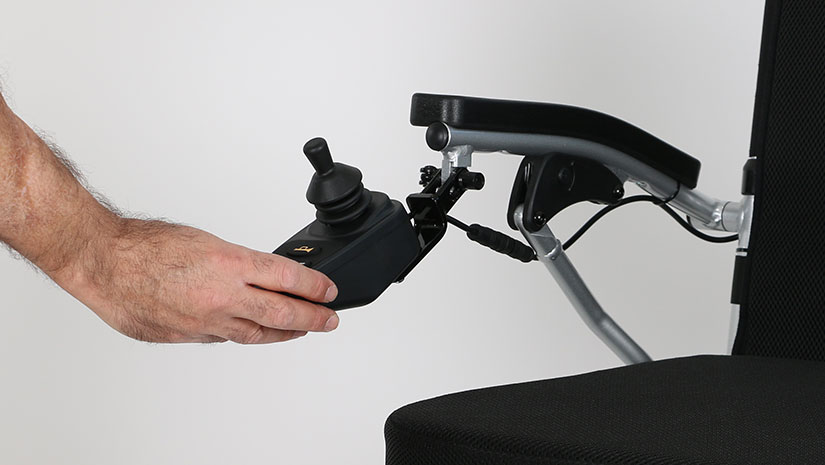 Suportul nostru inteligent pentru joystick vă aduce mai aproape de marginea meselor, îmbunătățind accesibilitatea. Suportul pentru picioare se pliază în mod convenabil sub scaun, iar roțile mari din spate, umflate cu aer, asigură o călătorie confortabilă chiar și pe teren accidentat. Cu două baterii standard și spațiu pentru o a treia baterie, autonomia se extinde până la 45 km, cu 7,5 ore de utilizare după o singură încărcare.