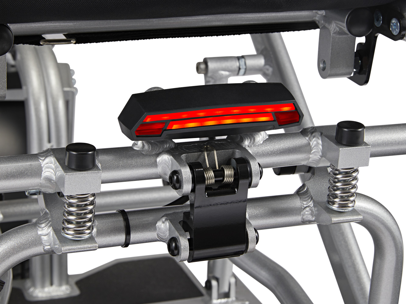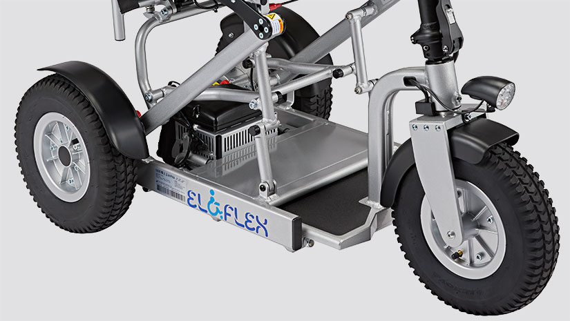 Asemenea scaunelor noastre cu rotile electrice, scuterul hibrid Eloflex S1 este pliabil și, prin urmare, ușor de luat cu dumneavoastră în călătorii. Prin simpla apăsare a unui buton, puteți selecta lungimea scuterului (105-120 cm) în funcție de mediul de conducere. În poziția cea mai lungă, vă puteți bucura de plimbări rapide, stabile și sigure, chiar și pe terenuri accidentate. În poziția mai scurtă, scuterul devine mai compact pentru a se deplasa cu ușurință în magazine, restaurante și alte spații interioare.
