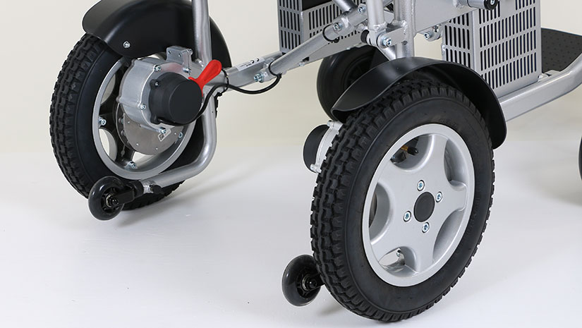 Situate în spatele spătarului, mânerele clasice de direcție ale scaunului cu rotile facilitează împingerea manuală a scaunului de către un membru al familiei sau de către îngrijitor. Acestea oferă, de asemenea, susținere excelentă în cazul în care utilizatorii doresc să folosească scaunul rulant electric drept cadru de mers pe distanțe scurte.